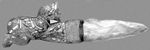 Священный нож ацтеков. Халцедон, бирюза, нефрит, малахит, перламутр. Британский музей. Лондон.