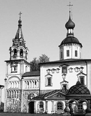 Боголюбово близ Владимира (дворцовая церковь, 12 в. — 1751, переход и «лестничная башня», 12 в.). Современный вид.