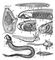 Æàáðîäûøàùèå ïîçâîíî÷íûå æèâîòíûå: 1 — àñöèäèÿ (ñõåìà; ñ ëåâîé ñòîðîíû ÷àñòè÷íî óäàëåíû ñòåíêè òåëà, îêîëîæàáåðíîé ïîëîñòè è ãëîòêè): à — ðîòîâîé ñèôîí, á — êëîàêàëüíûé ñèôîí, â — æàáåðíûå ùåëè; 2 — ëàíöåòíèê (ñõåìàòè÷åñêèé ïðîäîëüíûé ðàçðåç): à — æàáåðíûå ùåëè, á — îêîëîæàáåðíàÿ ïîëîñòü, â — êèøêà, ã — íàðóæíîå îòâåðñòèå îêîëîæàáåðíîé ïîëîñòè; 3 — ìèíîãà (ïðîäîëüíûé ðàçðåç ÷åðåç ïåðåäíþþ ÷àñòü òåëà): à — æàáåðíûé ìåøîê, á — êèøêà, â — ðîò, ã — îòâåðñòèå æàáåðíîãî ìåøêà â äûõàòåëüíóþ òðóáêó, ä — ìåææàáåðíûå ïåðåãîðîäêè, å — ñåðäöå; 4 — àêóëà (ãîëîâà, âñêðûòàÿ ñ áðþøíîé ñòîðîíû): à — æàáðû, á — æàáåðíûå ùåëè, â — æàáåðíûå àðòåðèè, ã — ñåðäöå; 5 — îêóíü (ãîëîâà ñ óäàë¸ííîé æàáåðíîé êðûøêîé): à — æàáðû, á — æàáåðíûå òû÷èíêè, â — ñåðäöå; 6 — ëè÷èíêà äâîÿêîäûøàùåé ðûáû ëåïèäîñèðåíà: à — íàðóæíûå æàáðû; 7 — ëè÷èíêà ãðåáåí÷àòîãî òðèòîíà (Triturus cristatus): a — íàðóæíûå æàáðû; 8 — ãîëîâàñòèê ëÿãóøêè Rana temporaria: a — íàðóæíûå æàáðû, á — îáëàñòü âíóòðåííèõ æàáð; 9 — õâîñòàòîå çåìíîâîäíîå ñèðåí: à — íàðóæíûå æàáðû.