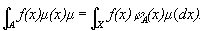 Пусть А — измеримое множество и jА(х) = 1 для х, принадлежащих А, и jА(х) = 0 для х, не принадлежащих А. Тогда интеграл от f (x) по множеству А определяют, полагая