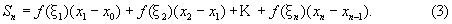 f (x1) [U(x1) — U(x0)] + f (x2) [U(x2) — U(x1)] +...+ f (xn) [U(xn) — U(xn—1)], (8)