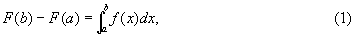 где F(x) есть первообразная функции f (x); определение не зависит от того, какая из первообразных выбрана для вычисления определённого И. Если функция f (x) непрерывна, то приведённое определение в случае a < b равносильно следующему определению, данному О. Коши (1823): рассматривают произвольное разбиение отрезка [a, b] точками