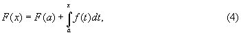 Определённый И., как указано выше, выражается через любую первообразную F(x). Обратно, первообразная F(x) может быть записана в виде
