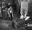Сцена из спектакля «Метаморфозы бродячего музыканта». Обработка старинного фарса. Труппа итальянского театра под руководством П. Де Филиппо. 1964.