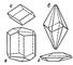 Кристаллы кальцита: а — ромбоэдрический; б — скаленоэдрический; в — призматический; г — таблитчатый.