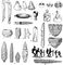 Неолит: 1 — кремнёвые серпы в оправе из рога и кости; 2 — мотыги каменные; 3 — расписная глиняная посуда; 4 — деревянные сосуды; 5 — женская статуэтка из глины; 6 — нож ритуальный (?) из кремня; 7 — сосуд глиняный с линейным орнаментом; 8 — сосуд глиняный с резным орнаментом; 9 — глиняная женская статуэтка; 10 — сланцевое тесло; 11 — гарпун из рога; 12, 13 — глиняная посуда с ямочным орнаментом; 14 — каменные наконечники стрел; 15 — лыжники (изображения на скалах Белого моря); 16 — кинжал с кремнёвыми вкладышами.
