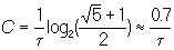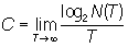 где T — длительность x. Верхняя граница С величин R, взятая по всем допустимым сигналам на входе, называют ёмкостью К. Вычисление ёмкости, подобно вычислению энтропии, легче в дискретном случае и значительно сложнее в непрерывном, где оно основывается на теории стационарных случайных процессов.