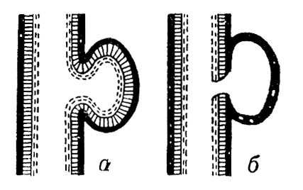 Аневризма: а — истинная; б — ложная.