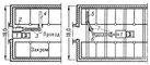Рис. 1. Картофелехранилище для закромного хранения: 1 — проезд; 2 — помещение для проращивания семенного картофеля; 3 — помещение для вентиляционных установок; 4 — закрома; 5 — тамбуры (размеры указаны в м).