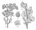Анис: 1 — ветка с цветками и плодами; 2 — нижняя часть растения с листьями; 3 — плод; 4 — цветок.