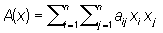 причём считают, что aij = aji. К. ф. от 2, 3 и 4 переменных непосредственно связаны с теорией линий (на плоскости) и поверхностей (в пространстве) 2-го порядка: в декартовых координатах уравнение линии и поверхности 2-го порядка, отнесённых к центру, имеет вид А (х) = 1, т. е. его левая часть является К. ф.; в однородных координатах левая часть любого уравнения линии и поверхности 2-го порядка является К. ф. При замене переменных x1, x2,..., xn др. переменными y1, y2,..., yn, являющимися линейными комбинациями старых переменных, К. ф. переходит в другую К. ф. Путём соответствующего выбора новых переменных (невырожденного линейного преобразования) можно привести К. ф. к виду суммы квадратов переменных, умноженных на некоторые числа. При этом ни число квадратов (ранг К. ф.), ни разность между числом положительных и числом отрицательных коэффициентов при квадратах (сигнатура К. ф.) не зависят от способа приведения К. ф. к сумме квадратов (закон инерции). Указанное приведение можно осуществить даже специальными (т. н. ортогональными) преобразованиями. Геометрически в этом случае такое преобразование соответствует приведению линии или поверхности 2-го порядка к главным осям.