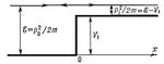 Если полная энергия частицы больше высоты стенки, т. е. E > V1, и частица движется слева направо (рис. 3), то решение уравнения (7) в области x < 0 имеет вид двух волн де Бройля — падающей и отражённой: