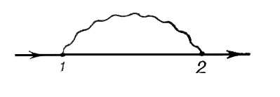 Графически процесс рождения и аннигиляции виртуальной электронно-позитронной пары изображен на рис. 8: фотон в точке 1 исчезает, порождая пару, которая затем аннигилирует в точке 2, в результате чего вновь образуется фотон. (Позитрон изображается такой же сплошной линией, как и электрон, на которой условно стрелка направлена в противоположную сторону, т. е. «вспять» во времени.)