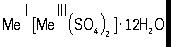 где MeI — одновалентный катион (например, Na+, К+, NH4+), а MeIII — трёхвалентный катион (Al3+, Cr3+, Fe3+ и др.). Иными словами, К.— кристаллогидраты двойных сернокислых солей. Все К. обладают вяжущим и кислым вкусом (отсюда название «К.», происшедшее от славянского кысати — киснуть, данное в 15 в.). К. относят к комплексным соединениям типа двойных солей, поэтому их формулы часто пишут так: