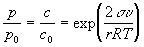 , где r — радиус средней кривизны поверхности раздела фаз, s — межфазное поверхностное натяжение, u — молярный объём жидкости или твёрдого тела, давление пара р или растворимость с которых фигурируют в уравнении, и R — газовая постоянная. Для шарообразных частиц r по абсолютной величине равен их радиусу.