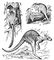 Кенгуру: 1 — древесный кенгуру Бенетта; 2 — поперечно полосатый кенгуру; 3 — рыжий гигантский кенгуру.
