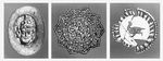 Декоративно-прикладное искусство Киргизии. 1. Форма-штамп с изображением головы «царя». 6—8 вв. Найдена на городище Сокулук. 2. Бронзовая бляха из буддийского храма в Ак-Бешиме. Конец 7 — начало 8 вв. 3. Фрагмент расписного керамического блюда. 11—12 вв.