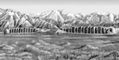 Руины караван-сарая Чалдывар с «гофрированными» стенами на р. Манакельды (Центральный Тянь-Шань). 8 или 10 в.