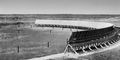 Наряду с синфазной А. в диапазоне СВЧ применяют А. бегущей волны, состоящую из системы излучателей, возбуждённых по закону бегущей волны, и имеющую максимальное излучение в направлении её распространения. К А. такого типа относятся спиральная антенна, А. типа «волновой канал», диэлектрическая антенна, А. поверхностной волны (импедансная А.) и др. Импедансная А. обычно состоит из ребристой поверхности и возбудителя. В А., показанной на рис. 19, возбудителем служит рупор. При высоте рёбер меньше 1/4 λ вдоль ребристой поверхности образуется бегущая волна, распространяющаяся со скоростью меньше скорости света. Такая А., как и щелевая, легко может быть сделана невыступающей. КНД А. бегущей волны, применяемых на СВЧ, обычно не превышает 100. В развитии теории и техники импедансных А. существ, роль сыграли работы советских учёных Л. Д. Бахраха, Л. Д. Дерюгина, М. А. Миллера, В. И. Таланова, О. Н. Терешина и др., американского учёного Г. Больяна и др.