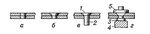 Основные операция клёпки: а — образование отверстия; б — образование гнезда под потайную головку; в — вставка заклёпки; г — образование замыкающей головки; 1 — закладная головка; 2 — стержень; 3 — замыкающая головка; 4 — обжимка; 5 — поддержка.