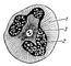 Клеточный центр лейкоцита саламандры: 1 — цитоплазма; 2 — ядро; 3 — клеточный центр.