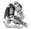Обыкновенный кобчик: взрослые птицы — самец (1) и самка (2); молодая птица (3).