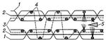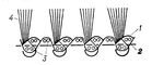 Рис. 4. Структура трубчатых ковров: 1 — коренная основа; 2 — настилочная основа; 3 — уток; 4 — пучки ворсовой основы.