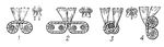 Рис. 1. Схемы вязки двойного узла: 1 — за две нити основы; 2 — за четыре нити основы; 3 — за одну нить основы; 4 — за две нити основы вертикально.