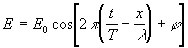 При распространении плоской монохроматической электромагнитной волны в однородной среде напряжённость электрического поля Е вдоль направления распространения этой волны ох в момент времени t равна: