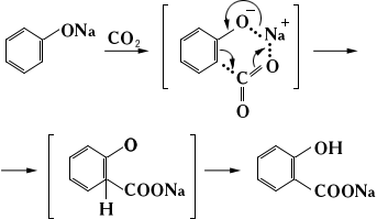 Кольбе — Шмитта реакция, метод синтеза ароматических о-оксикислот действием СО2 на щелочную соль соответствующего фенола: