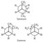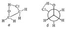 Рис. 5. Кресловидные конформации: циклогексана с аксиальными (а) и экваториальными (е) связями (I), ангидрида транс-циклогексан-1,2-дикарбоновой кислоты (II) и ангидрида цис-циклогексан-1,2-дикарбоновой кислоты (III).