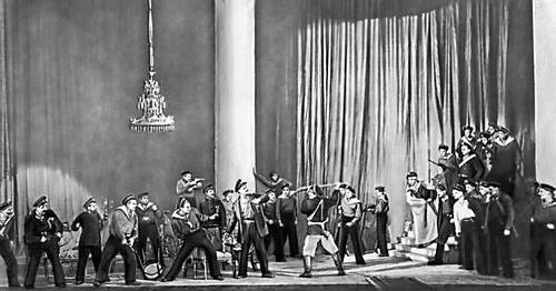 Сцена из спектакля «Гибель эскадры» А. Е. Корнейчука. Украинский драматический театр им. Т. Г. Шевченко. 1933.