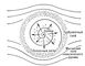 Рис. 4. Схема, иллюстрирующая характер солнечного ветра и структуру регулярного межпланетного магнитного поля (спираль) в области модуляции галактических космических лучей; штриховая окружность — орбита Земли.