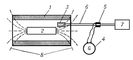 Рис. 2. Феррозондовый коэрцитиметр (блок-схема): 1 и 2 — чувствительные элементы феррозонда, соединённые по разностной схеме; 3 — феррозондовый нулевой прибор; 4 — образец; 5 — силовые линии магнитного поля образца; 6 — намагничивающая катушка.