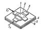 Крестообразный плёночный криотрон: 1 — управляющая плёнка (Pb); 2 — изолирующий слой (SiO2); 3 — управляемая плёнка (Sn); 4 — изоляция (SiO2); 5 — экранирующий подслой (Pb); 6 — подложка; Iy — управляющий электрический ток; Iв — управляемый электрический ток.
