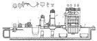 Рис. 2. Схема автоматизированной линии для штамповки картеров двигателей: I — исходное положение рулона стальной ленты; II — размотка; III — чистка; IV — правка; V — подача; VI — вырубка заготовки; VII — смазка; VIII — вытяжка изделия; IX — переформовка радиусов и правка фланцев; X — обработка фланцев по контуру; XI — формовка ребер жесткости и фланцовка по контуру; XII — пробивка отверстий; 1 — разматывающее устройство; 2 — листоправильная машина; 3 — двухкривошинный пресс простого действия с валковой подачей; 4 — механизм передачи и подъема стопы заготовок; 5 — однокривошипный пресс двойного действия для вытяжки; 6 — механизм передачи изделий и съёма штампа; 7 — многопозиционный пресс с грейферной подачей; 8 — механизм транспортирования изделий и съёма штампа.