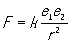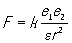 Здесь k — коэффициент пропорциональности, зависящий от выбранной системы единиц; в абсолютной (гауссовой) системе единиц (СГС системе единиц) k = 1; в Международной системе единиц (СИ) k = 1/4pe0, где e0 — электрическая постоянная. Сила F направлена по прямой, соединяющей заряды, и соответствует притяжению для разноимённых зарядов (F << 0) и отталкиванию для одноимённых (F > 0).