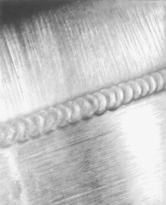 Рис. 1в. Лазерная сварка: сварной шов, полученный при сварке листов ковара и нержавеющей стали толщиной 0,3 мм излучением лазера на алюмо-иттриевом гранате.