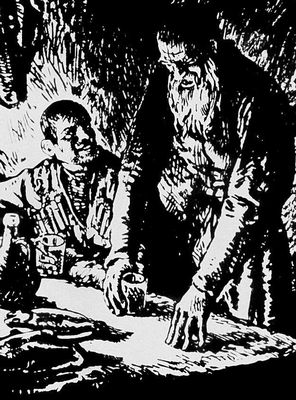 «Ерошка у Оленина». Иллюстрация к повести Л. Н. Толстого «Казаки». Тушь, акварель. 1936. Музей Л. Н. Толстого. Москва.