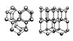 Рис. 2. Схема структуры льда I (показаны атомы кислорода и направления водородных связей) в двух проекциях.