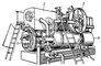 Локомобиль (франц. locomobile, от лат. locus — место и mobilis — подвижной), паросиловая установка, состоящая из объединённых в один агрегат парового котла, поршневой паровой машины и вспомогательных устройств. Передвижные Л. (на колёсном ходу) имеют котёл паровозного типа, мощность паровой машины 8,5—55 квт (12—75 л. с.). Л. работают насыщенным или перегретым паром с давлением 1—1,2 Мн/м2 (10—12 кгс/см2) а выхлопом в атмосферу; применяются преимущественно в сельском хозяйстве. Стационарные Л. (рис.) предназначены для небольших промышленных предприятий и обычно служат для привода генераторов электрического тока. Котлы таких Л. выполняются с цилиндрической топкой и выдвижной системой дымогарных труб. Давление перегретого пара около 1,5 Мн/м2 (15 кгс/см2); мощность машин 90—580 квт (125—800 л. с.). Для предприятий, употребляющих пар для технологических целей (варки, сушки, отопления), применяют теплофикационные Л. с промежуточным отбором пара или рассчитанные на противодавление до 0,35 Мн/м2 (3,5 кгс/см2). Топливом Л. служат различные отходы (опилки, костра, щепа, лузга) или местное топливо (дрова, торф и др.). Достоинства Л. — надёжность, нетребовательность к качеству воды и топлива, большой срок службы, простота монтажа на месте. Недостатки — невысокая экономичность и большая металлоёмкость. Производство Л. в СССР прекращено в 60-х гг.; они заменяются более эффективными электрическими двигателями и двигателями внутреннего сгорания.