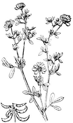 Рис. 2. Люцерна жёлтая (серповидная): стебель с цветочными кистями и кисть с бобами.