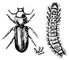 Мавританская козявка: 1 — жук; 2 — яйца; 3 — личинка.