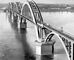 Арочный мост, мост с пролётными строениями, основными несущими конструкциями которых служат арки или своды. Характерные особенности А. м. — передача опорам не только вертикальных, но и горизонтальных усилий (распора), а также работа арок (сводов) преимущественно на сжатие. Каменные А. м. известны с древнейших времён (см. Мосты). Современные А. м. строят из железобетона (главным образом) или из стали. На рис. показан железнодорожный А. м. через Оку у г. Горького, сооруженный из сборного железобетона и имеющий главные пролёты по 150 м. В отдельных случаях возводят безраспорные А. м. со специальными элементами (затяжками), воспринимающими распор. А. м. обычно устраивают с ездой поверху, они отличаются лёгкостью конструкций и архитектурной выразительностью.