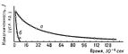 Экспериментальная кривая (а) спада намагниченности (в условных единицах) проволоки диаметром 0,5 мм из сплава Fe — Ni и вычисленная кривая (б) спада намагниченности того же образца при наличии только вихревых токов. Различие кривых а и б объясняется влиянием магнитной вязкости.