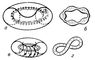 Тороидальные М. л. Один из способов предотвращения ухода частиц из М. л. вдоль направления поля состоит в придании ловушке конфигурации, при которой у объёма, занимаемого ею, вообще нет «концов»; такой конфигурацией является, например, тор. Ловушка этого типа была первой М. л., предложенной И. Е. Таммом и А. Д. Сахаровым в 1950 в связи с проблемой осуществления управляемой термоядерной реакции. Простейшим примером М. л. этого типа является тороидальный соленоид (рис. 2, а). Однако в ловушке со столь простой геометрией поля частицы удерживаются не очень долго: за каждый оборот вокруг тора частица отклоняется на небольшое расстояние поперёк поля (так называемый тороидальный дрейф). Эти смещения накапливаются, и в конце концов частицы попадают на стенки М. л. Для компенсации тороидального дрейфа можно сделать поле неоднородным вдоль М. л., как бы «прогофрировав» его (рис. 2, б). Но более удобно создать конфигурацию, при которой силовые линии магнитного поля винтообразно навиваются на замкнутые поверхности, причём эти поверхности вложены одна в другую. Например, если внутри тороидального соленоида поместить проводник с током, проходящий по его средней линии (рис. 2, в), то силовые линии поля будут навиваться на тороидальные поверхности. Частицы с малым Rл будут не очень сильно отклоняться от этих поверхностей. Аналогичные конфигурации можно создать с помощью внешних обмоток, например, как предложено американским учёным Л. Спицером в 1951, добавляя к обмотке тора (рис. 2, а) винтовую обмотку с попеременно направленными токами. Ещё один способ состоит в скручивании тора в фигуру типа «восьмёрки» (рис. 2, г). Можно также использовать более сложные конфигурации, комбинируя различные элементы «гофрированных» и винтовых полей.