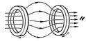 Рис. 4. Простейшая адиабатическая магнитная ловушка. Стрелки указывают направления тока в коаксиальных катушках.