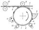 Схема устройства для магнитографии: 1 — магнитный барабан; 2 — магнитный слой барабана; 3 — блок магнитных записывающих головок; 4 — скрытое магнитное изображение; 5 — ферромагнитный порошок; 6 — порошковое изображение; 7 — бумага; 8 — прижимной ролик; 9 — порошковое изображение на бумаге; 10 — обжимные валики; 11 — узел очистки; 12 — магнитная стирающая головка.