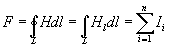 Здесь: Hl — проекция Н на направление элемента контура интегрирования dl, n — число проводников (витков) с током li, охватываемых контуром. Единица М. с. в Международной системе единиц (СИ) — ампер (или ампер-виток), в СГС системе единиц (симметричной) — гильберт.
