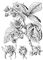 Малина: 1 — плодоносящая ветвь; 2 — цветок в разрезе; 3 — плод в разрезе.